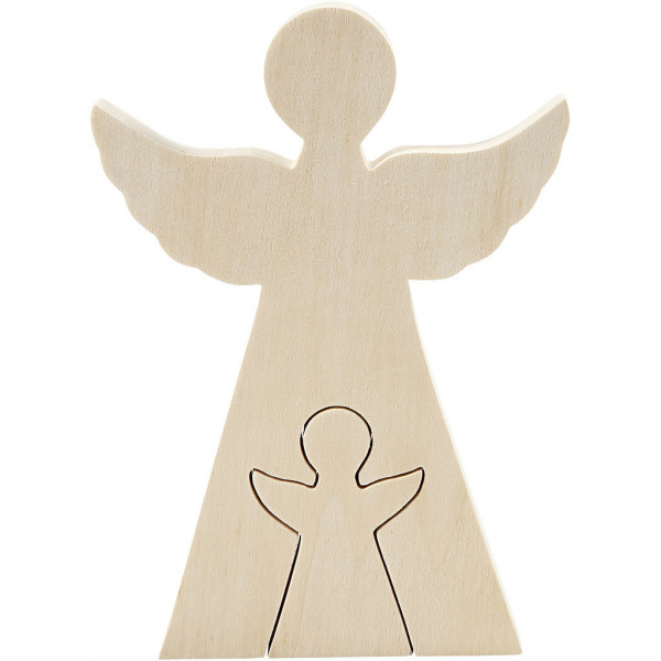 Two figures in one, made of light wood. The smallest removable piece can be removed from the largest.
