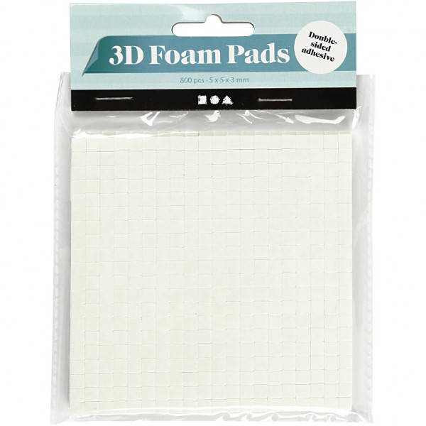 3D Foam Pads, size 5x5 mm, thickness 3 mm, 2 sheets, white [HOB-24640]