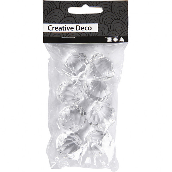 Acylic Beads, size 27x30 mm, hole size 2.5 mm, 8 pcs, Gloss transparent [HOB-636850]