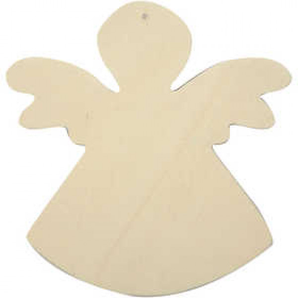 Flat angel of wood with hole for hanging.