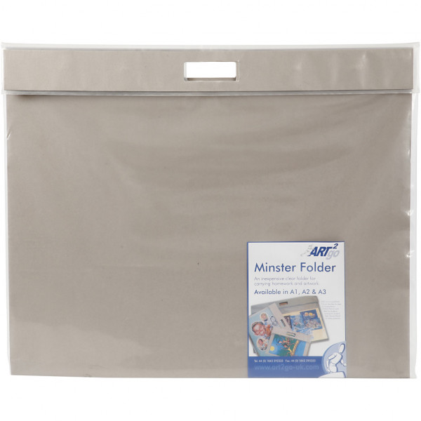 High quality polythene art portfolio with a durable high grade inner board, a velcro flap fastening and a cut out handle.