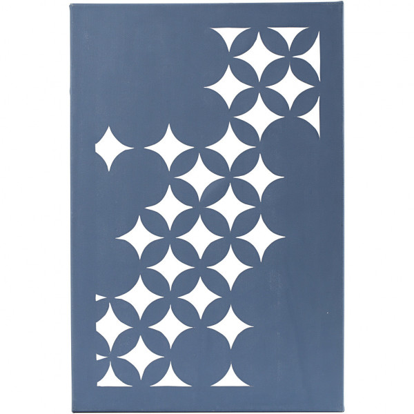 Primed, unbleached cotton canvas of super quality. Mounted on stretcher with a seam-edge, and plotted pattern, for cutting out.