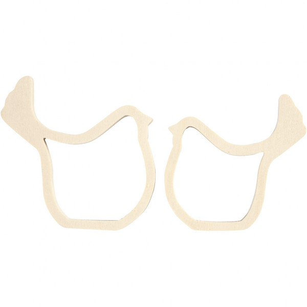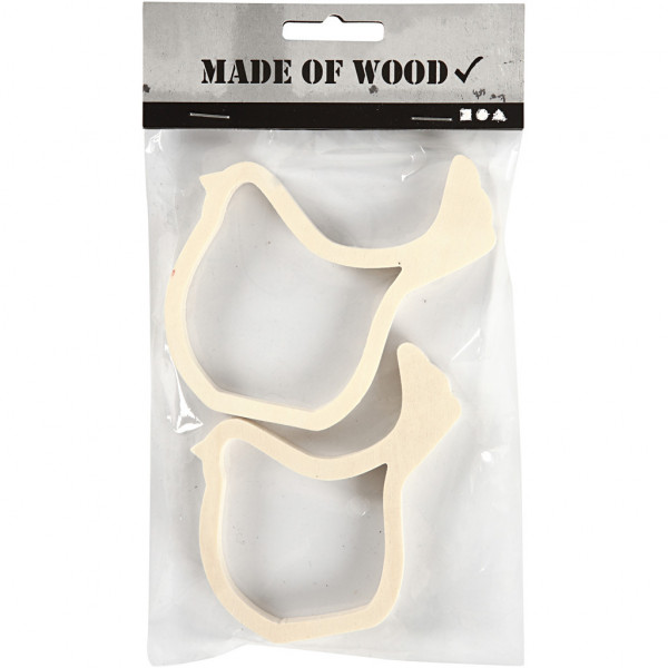 Birds, H: 9+9.5 cm, W: 8.5+9.5 cm, 1 set, plywood [HOB-56149]