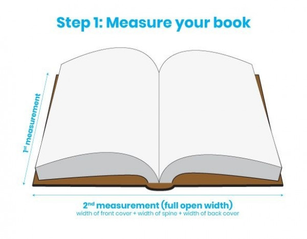 For books 28.3 cm tall and up to 55.2 cm wide (width of front and back cover + width of spine). The width of the clear cover is adjustable.