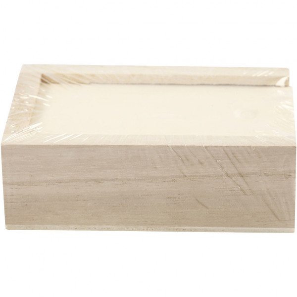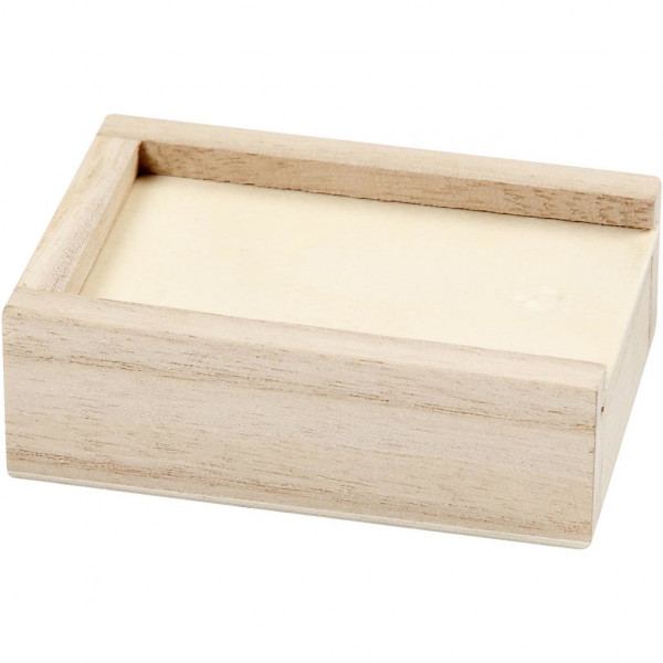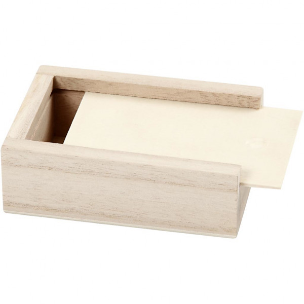 Small box of light wood with a sliding lid.