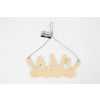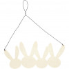 Suspension consisting of 4 continuous rabbits in light wood with suspension of black metal wire.