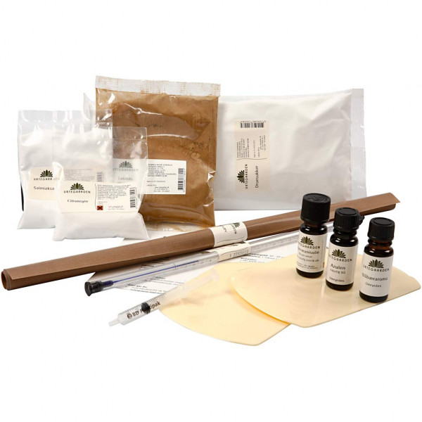 The kit includes: dextrose, taste, Colour, recipe, candy mat, thermometer, 2 plastic scrapers and 1 measuring syringe.