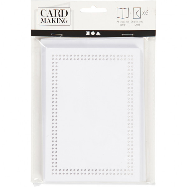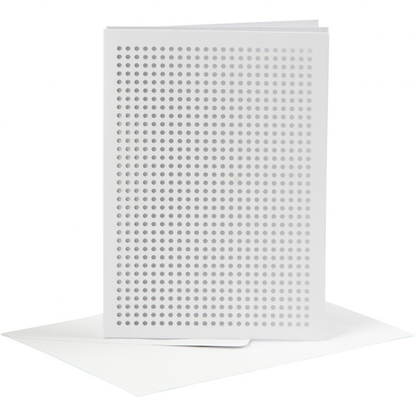 Card for embroidery, card size 10.5x15 cm, envelope size 11.5x16 cm, 6 pcs, white [HOB-23901]