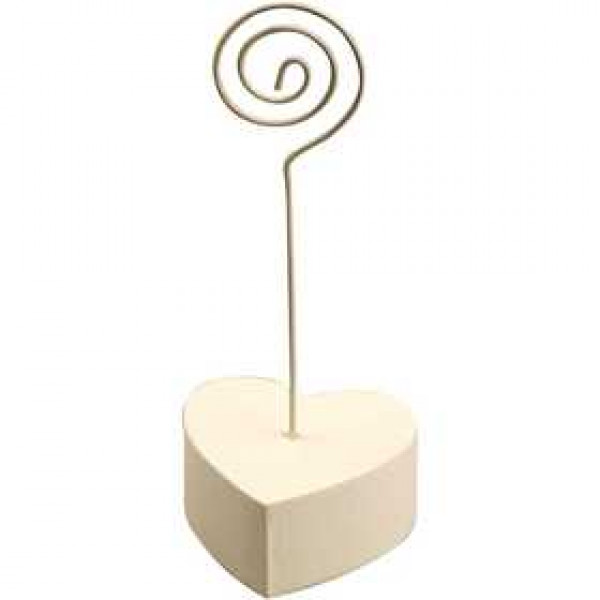 Spiral of metal and heart-shaped stand of poly resin.