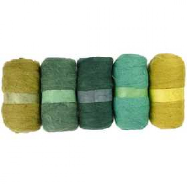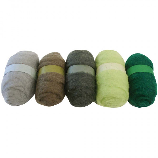 Carded Wool, 5x100 g, green harmony [HOB-45122]