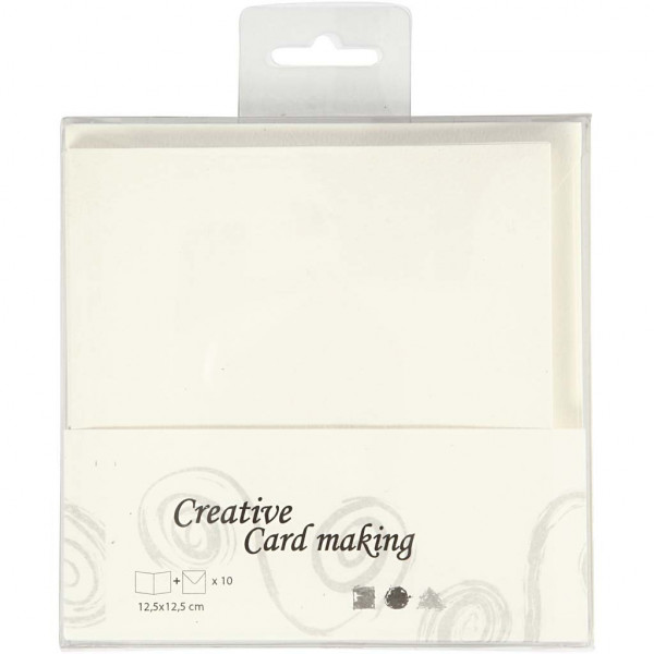 Cards And Envelopes, card size 12.5x12.5 cm, envelope size 13.5x13.5 cm, 10 sets, off-white [HOB-23728]