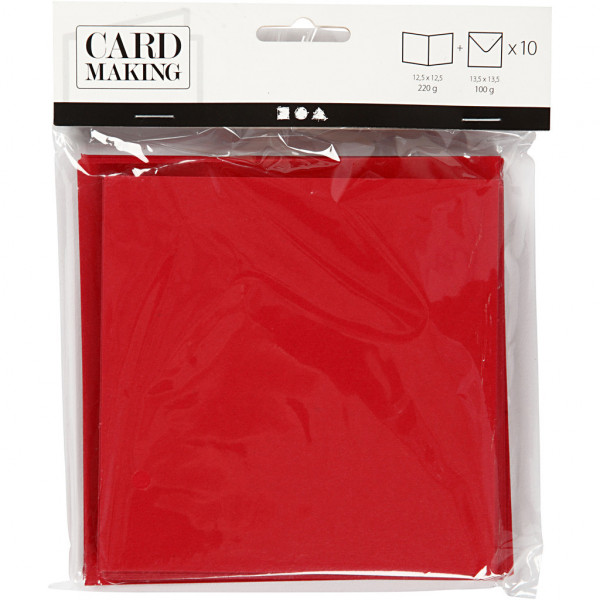 Cards And Envelopes, card size 12.5x12.5 cm, envelope size 13.5x13.5 cm, 10 sets, red [HOB-23734]