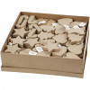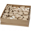 Pack. with 6 shapes - star, stocking, heart, tree, candy cane and crazy heart. Supplied in papier-mâché box size 37 x 37 x 10cm.