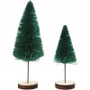 Small trees made of nylon bristles and twisted wire. Each tree comes with a small wooden stand for mounting. Is used to make smaller Christmas landscapes for window sills and so on.