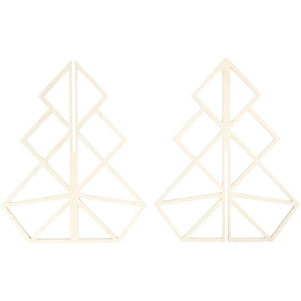 Bright Christmas tree in a geometric shaped design of 3mm thick wood. Assembled by two parts with a slit.