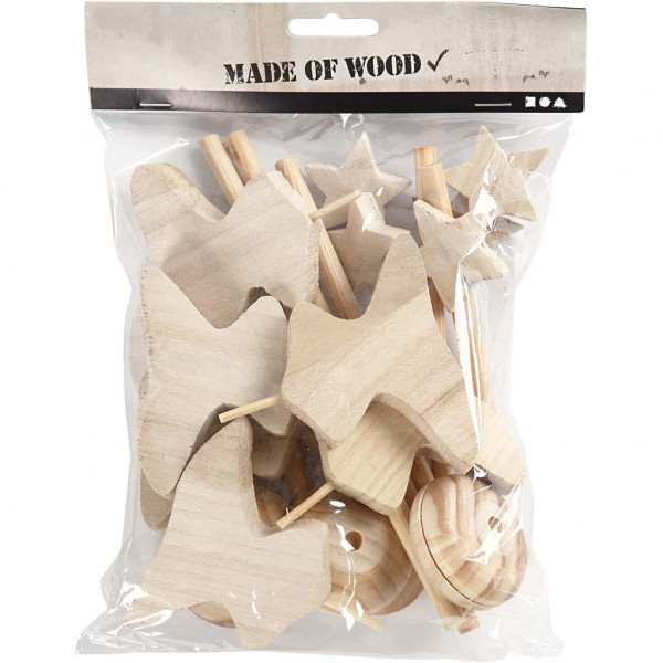 Assembly Kit including Christmas tree, star, foot and stick of massive wood.