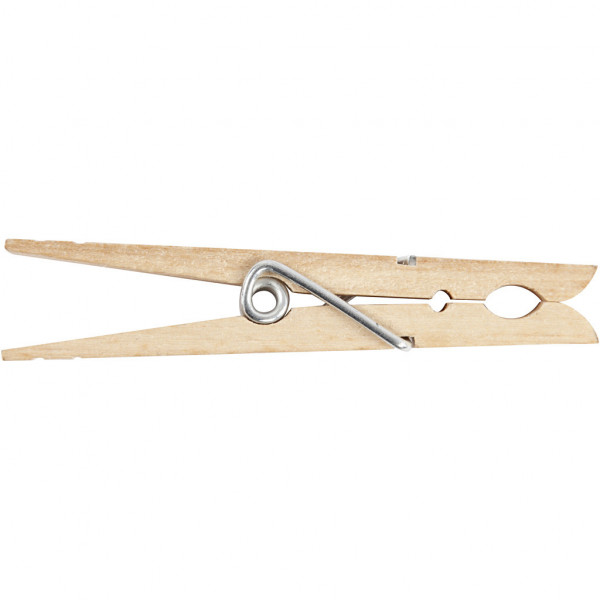 Wooden clothes pegs with a metal spiral.