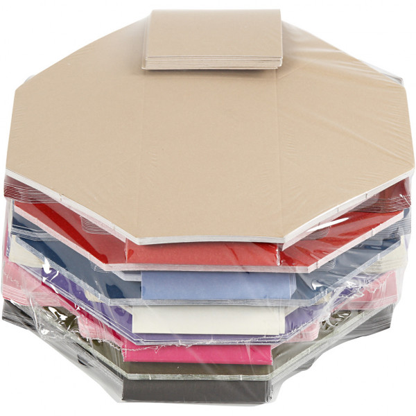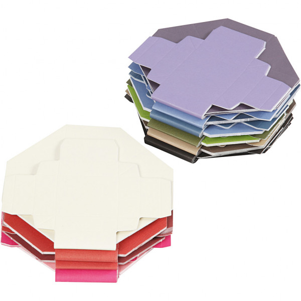 Assortment of folding boxes with a hammered surface in matching colours on front and back, is supplied, unassembled.