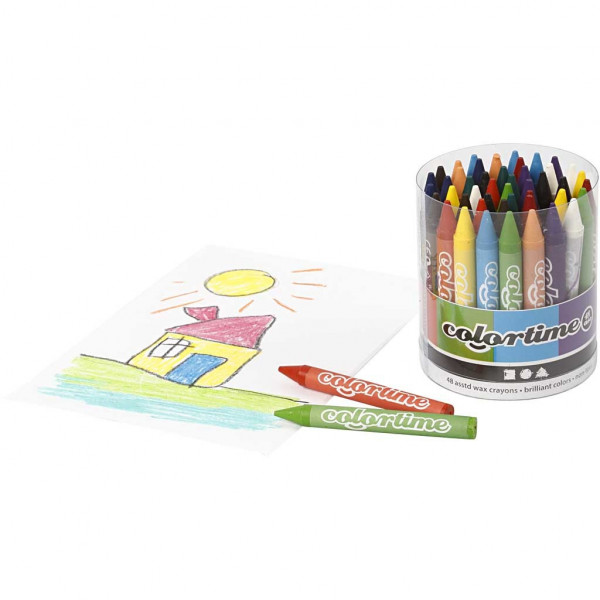 Colortime Wax Crayons, thickness 11 mm, L: 10 cm, 48 pcs, asstd colours [HOB-38138]