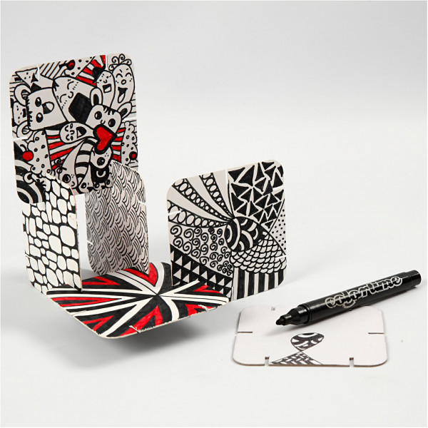 Square pieces made of heavy cardboard with matt surface and grooves along the edges.