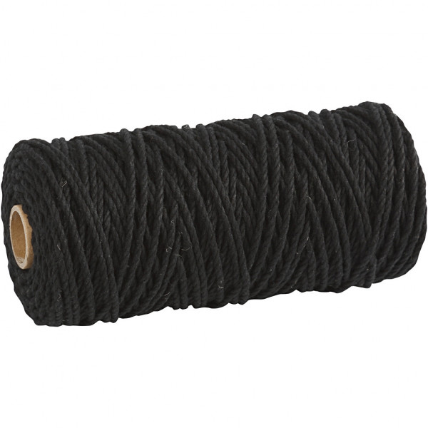 Cotton Twine, L: 100 m, thickness 2 mm, 225 g, black [HOB-41550]