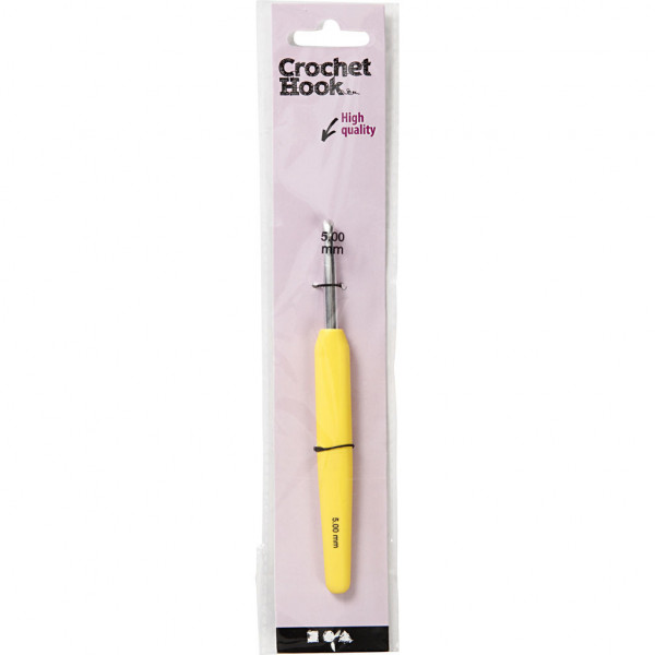 Crochet Hook, size 5, L: 13.3 cm, 1 pc, yellow [HOB-42386]