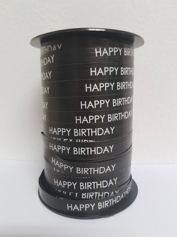 Ribbon Happy Birthday Black 10mm x 250 meter (1 pcs) > Price is per roll.