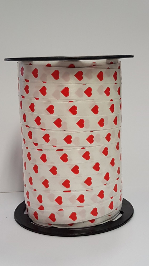 Curling Ribbon with Hearts print 10mm x 225 meter per roll (1 roll) > Price is per roll