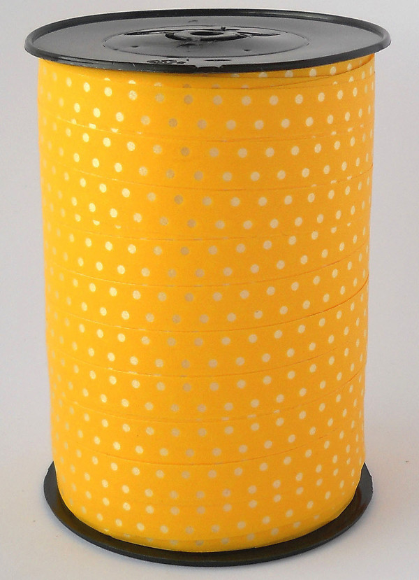 Curling Ribbon with Dots Yellow 10 mm x 225 mtr (1 roll) [HV-PLS10Y]