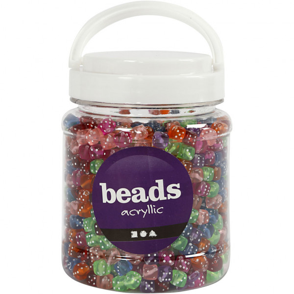 Dice Bead Mix, size 7x7 mm, hole size 1.5 mm, 700 ml, asstd colours [HOB-61786]