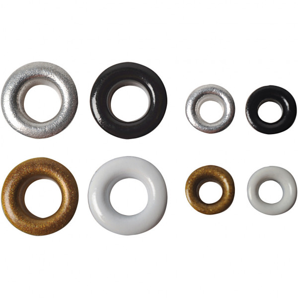 Round metal eyelets from Fiskars. Easily mounted with eyelet setter.