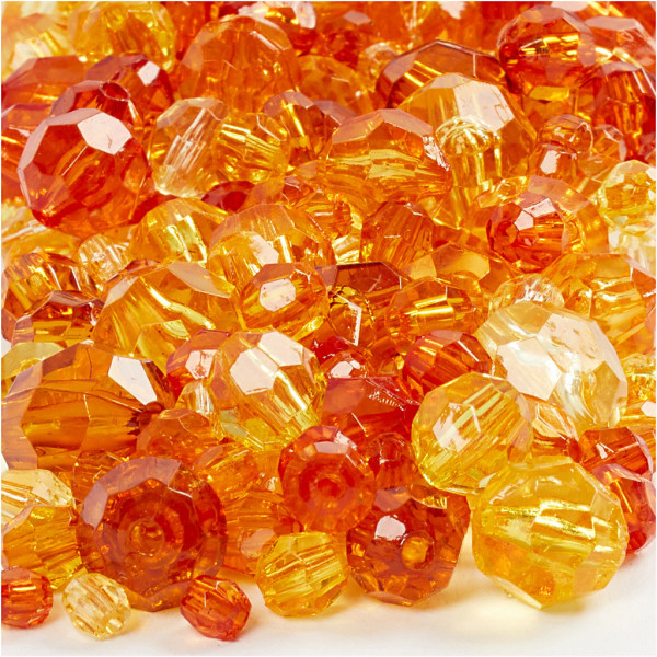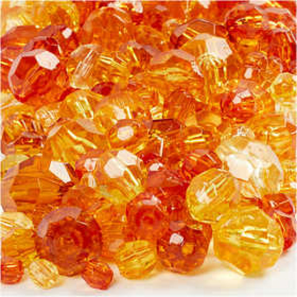 Exclusive crystal mix of 'A' grade transparent faceted acrylic beads in 5 different sizes.