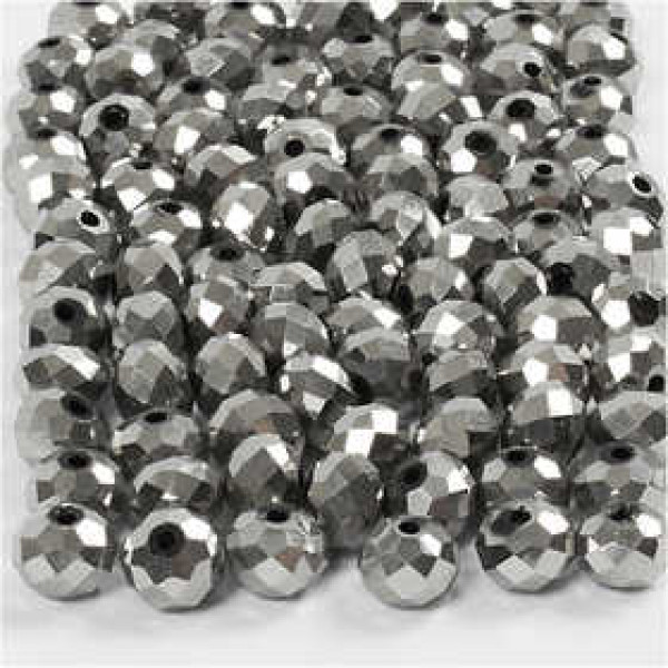 Faceted Beads, size 5x6 mm, hole size 1 mm, 100 pcs, metallic grey [HOB-61684]