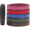 An assortment of broad, faux leather belt with coloured surface and black edges.