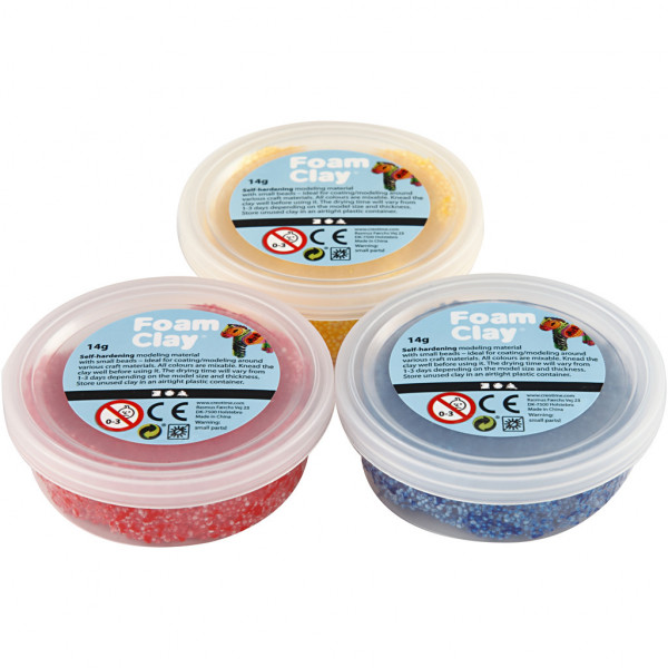 An assortment of self-hardening modelling material with small bead-like texture - ideal for coating/modelling craft materials. Packed in practical tubs - store the unused clay in an airtight container to prevent drying-out.