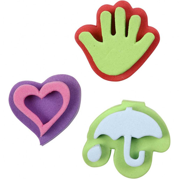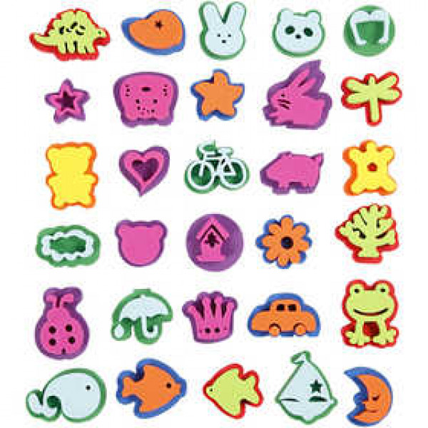 An assortment of foam stamps with various fun designs.