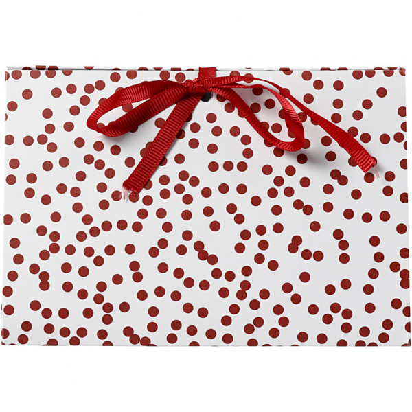 Gift box in sturdy, silk mat cardboard with designs in Vivi Gade design. Closes with the supplied ribbon.