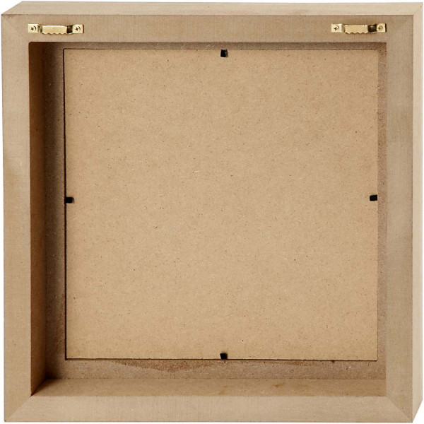 Square frame with depth so that it can stand freely. The back is fitted with brackets for hanging.
