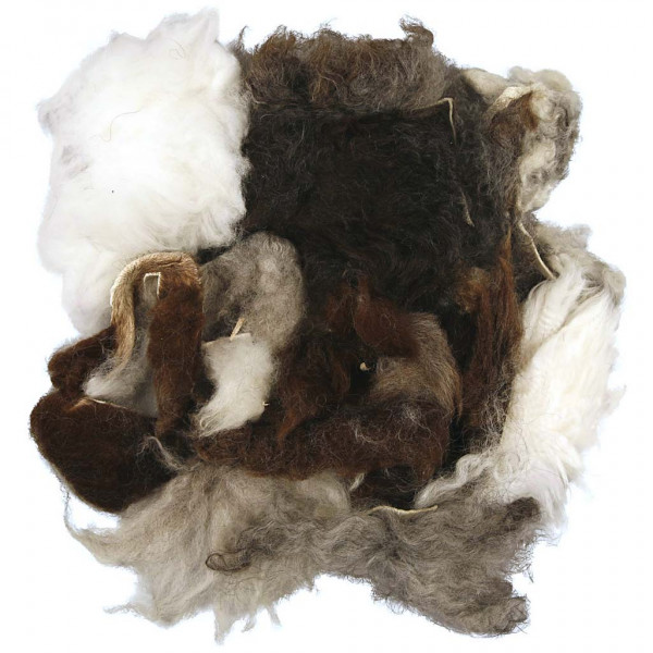 An assortment of different fur remnants with leather on the back. Suitable for elf beards, easter sheep and other creative projects.