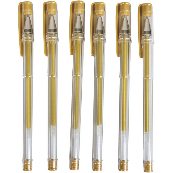 Gel Pens, line width: 0.8 mm, 6 pcs, gold [HOB-25107]