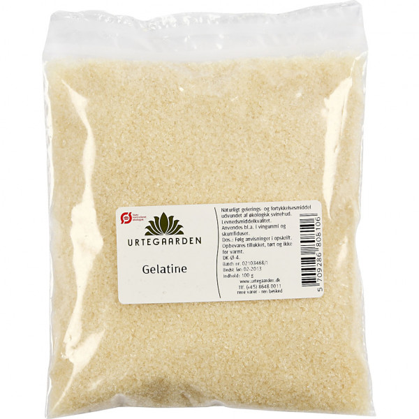 Organic odour free gelation product (animal pork rind/skin) - for use in wine gums, marshmallows, liquorice and soft liquorice confectionery.