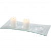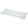 Oblong dish of transparent glass with 3 compartments suitable for tea lights.