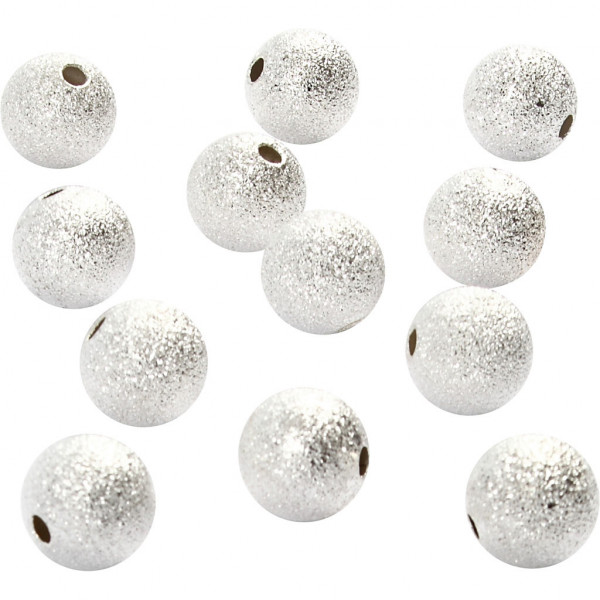 Glitter Bead, D: 10 mm, hole size 1.5 mm, 20 pcs, silver-plated [HOB-60666]