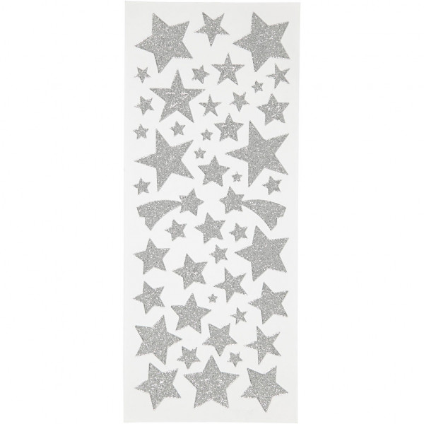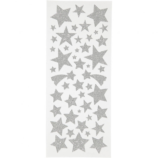 Glitter Stickers, sheet 10x24 cm, approx. 110 pc, 2 sheets, silver [HOB-29111]