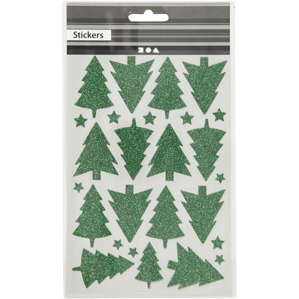 Glitter Stickers, sheet 12x18.5 cm, 1 sheet, green [HOB-27002]