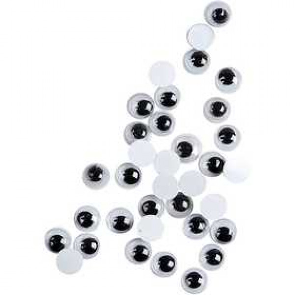 Glue-on wiggle eyes with moveable pupils and flat, not sticky back.