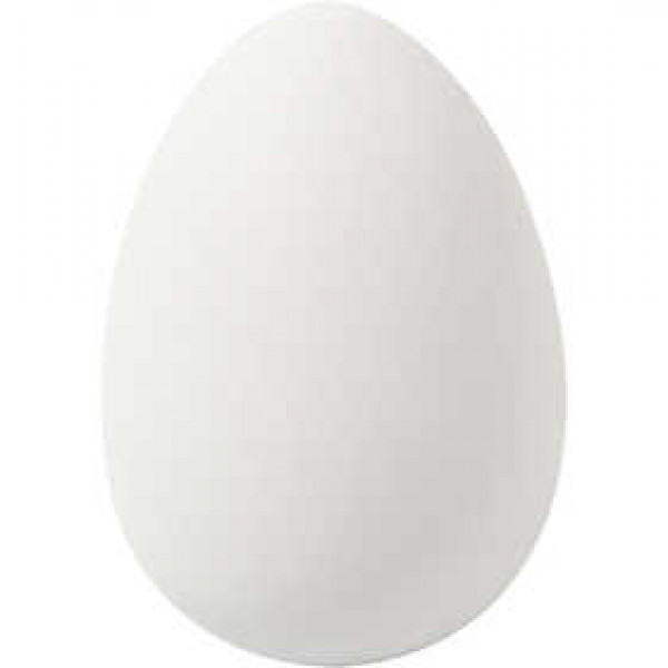 Genuine plastic egg with silk mat surface and a hole for hanging.