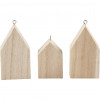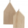 Hanging Houses, H: 4.5+6.5 cm, 30 pcs, paulownia [HOB-55957]
