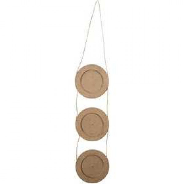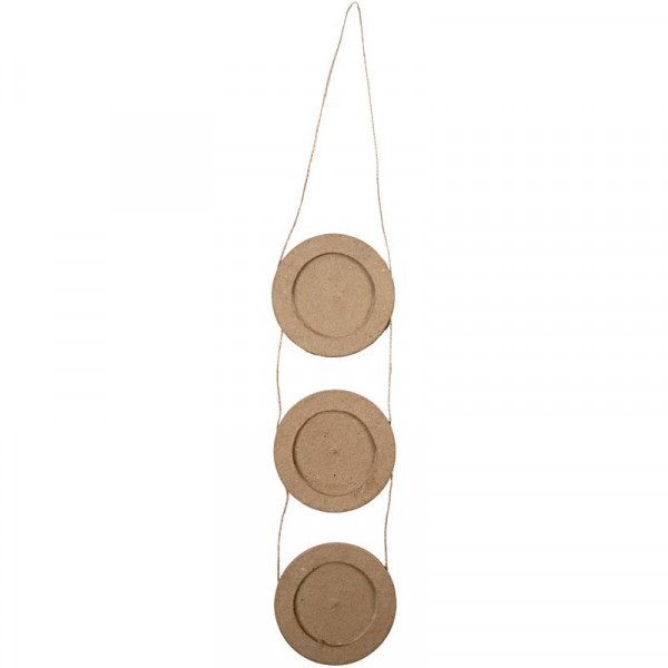Handmade, 3-in-one, hanging photo frames of papier-mâché with slot and string for hanging.