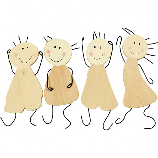 Happy figures, H: 12.5 cm, 4 pcs, plywood [HOB-500111]